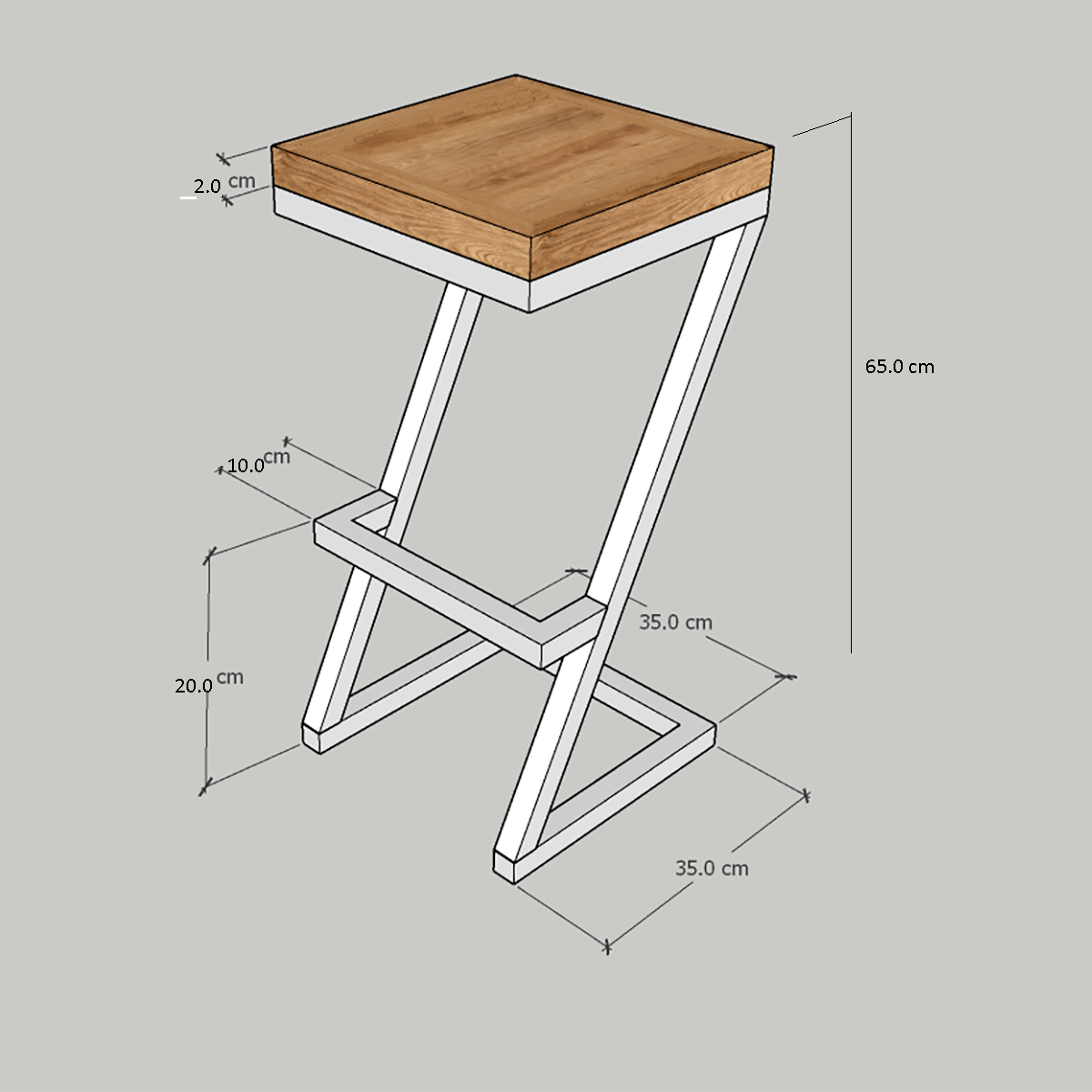 كرسي بار عصري مع مقعد خشبي وقاعدة معدنية على شكل حرف Z، ارتفاع 65 سم