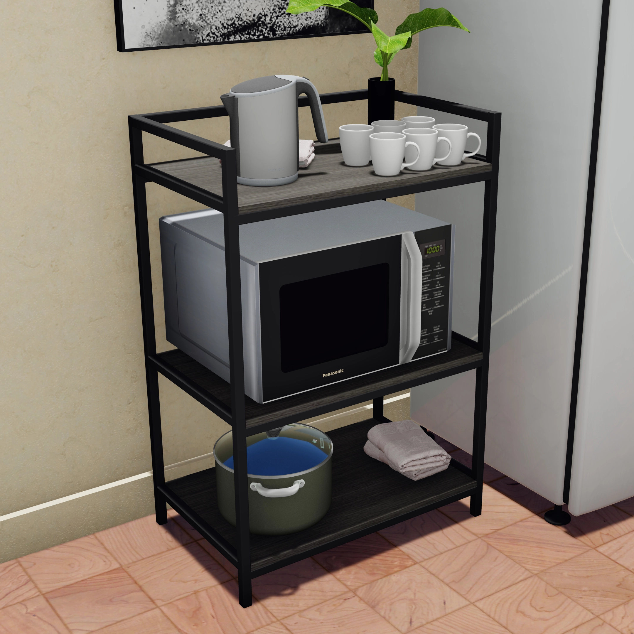 استاند مطبخ 3 رف ، لتنظيم ادوات المطبخ و توفير المساحة ، حامل ميكروييف ، حامل فرن ، بلندر ، خلاط