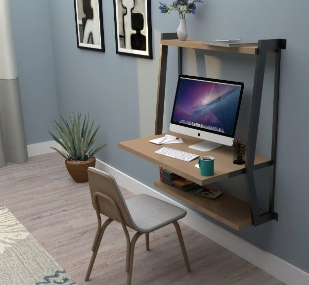 مكتب دراسة و عمل و لابتوب معدني معلق على الحائط 3 رف 120 في 60 سم MS215