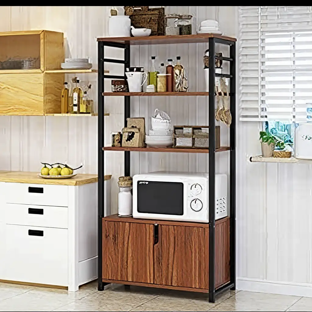استاند ارفف منظم اجهزة المطبخ حامل ميكروويف و فرن و توابل و كوفي كورنر معدني ارفف خشب 4 رف و 2 درفة 80 في 40 سم- msAR18